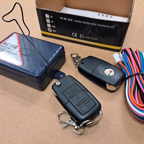 Auton keskuslukituksen kauko-ohjaus järjestelmä. Lukituspainikkeiden päälle tulee liukukansi, joka estää vahinkokäytöt. Mukana on kytkentäkaavio, ohje.
