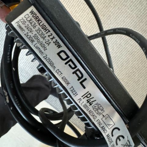 Taivutettu ladattava ledilamppu, musta-keltaista iskunkestävää ABS-muovia, erittäin vahvat magneetit, 2 takana ja 1 pohjalevyssä. 2 pyöritettävää koukkua.