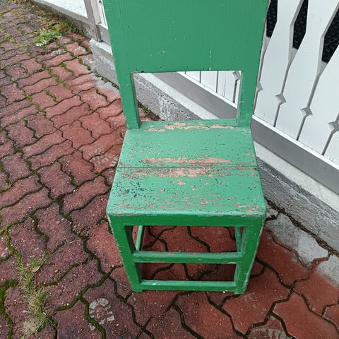 - yhtä 'takajalkaa' korjattu siististi tukevaksi, hauska ja näyttävä tuoli,