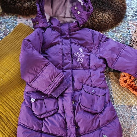 Myydään tyttöjen claire.dk merkkinen pidemmän mallinen toppatakki. Sivutaskut, muhkea kaulus, ei huppua. Edessä ja hihoissa tummentumaa/pinttymiä, muuten ehjä ja hyväkuntoinen takki, koko 98.