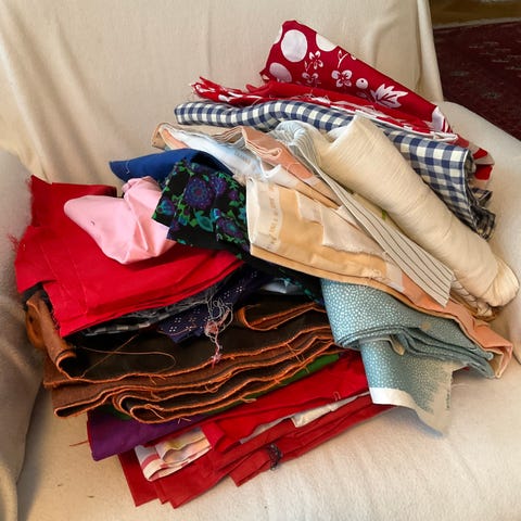 Joyce, Made in Finland by Tampella, paksua puuvillaa, retroa, arvio 1960- luvulta, pituus 320 cm yhteensä, mutta kankaassa reikä, jolloin siitä saa kaksi palaa pituudeltaan 150 cm ja 165 cm