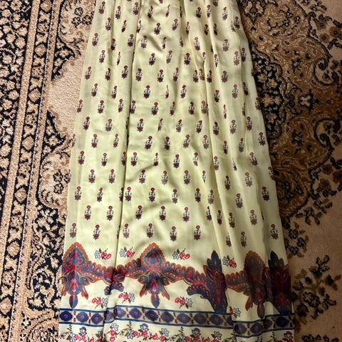 Kuviollinen tumman sinipojainen mekko. Sivutasku ja vyö tulee mukaan. Koko 38€.