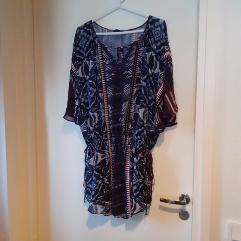 Kuvan uudenveroinen tunika, koko S/M, metalliset koristeet kaula-aukossa, voin lähettää.