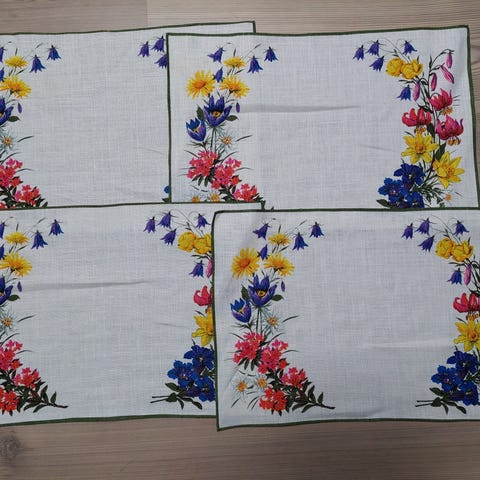 Kuusi kappaletta laadukkaita pöytätbletteja Stockmannin Casa-mallistosta. Kukkaisa kesäinen kuosi. Kaikki yhteensä 18 euroa.