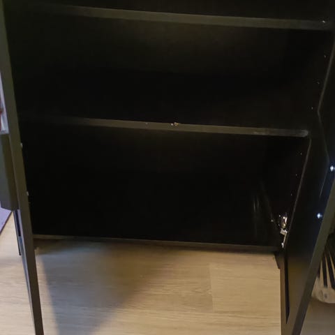 Vetolaatikolla ja hyllyllä varustettu kokopuinen kaappi