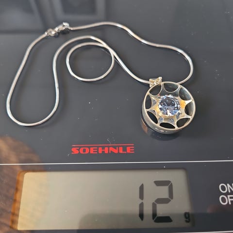 Violetilla kivellä 813 hopeinen riipus ketjulla.