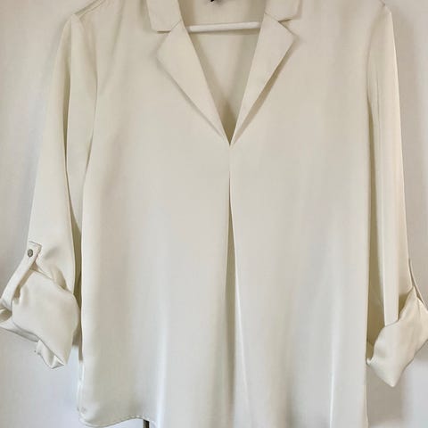 Myydään Vero Modan M-kokoinen pitkähihainen paita. Edessä rypytystä (ei ns. laskeudu suorasti, vaan jättää pikku lainetta etupuolelle). Ylhäällä nappi, jota voi pitää kiinni tai auki.