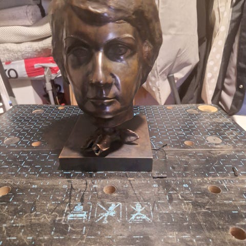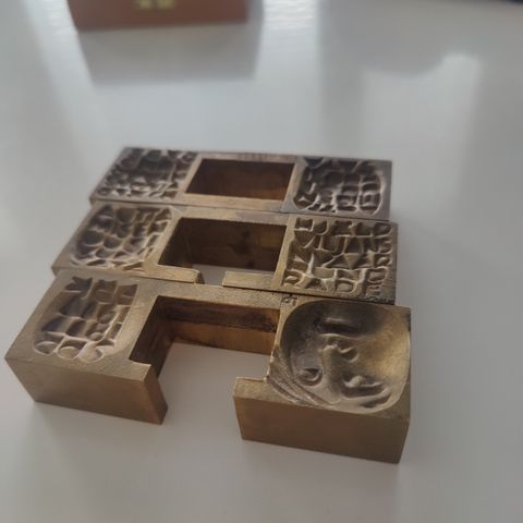 A bronze sculpture Hädän kolmet kasvot by Finnish sculptor Laila Pullinen. The 100thAnniversay medal is made for Red Cross Finland in 1977. The puzzle sculpture is signed LP.