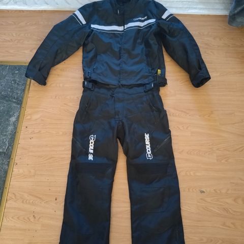 Takki sekä housut ovat CE hyväksytyt. Takin koko 56, housut ovat 54, sopii hyvin 180-190 mittaiselle.