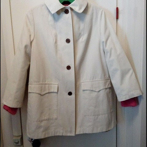 Myytävänä siisti uutta vastaava kunnossa kevyesti pehmustettu kaksipuolinen pusakkamallinen ulkoilutakki. Valkoinen puoli vettähylkivää ja tuulenpitävää. Edessä vetoketju ja molemmissa puolissa sivutaskut.