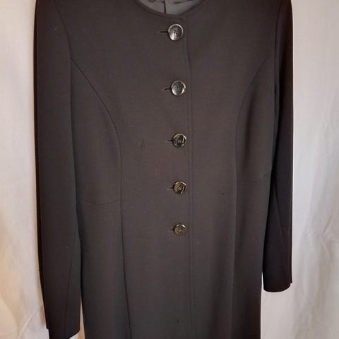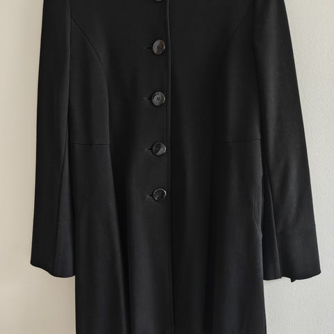 Musta, laadukas Ritva Fallan jakku, koko 38. Ollut työvaatteena ja vähällä käytöllä. Materiaali joustavaa kangasta, hihansuissa halkiot. Lyhyempi malli.