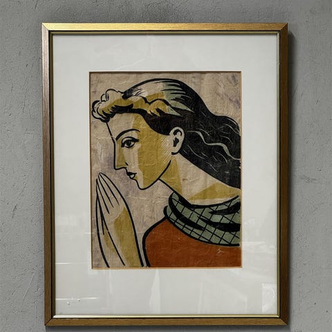 Työ hyvässä kunnossa, kehyksissä ajan tuomaa kulumaa.
