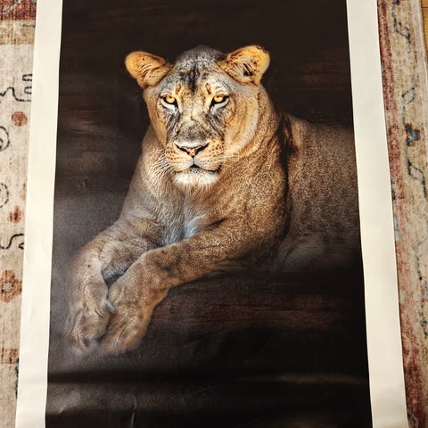 Ruiskumaalattu Leijonakuningas 2 -juliste, jossa elokuvan hahmot Kiara ja Kovu Tuntemattoman taiteilijan epävirallinen, mutta taidokkaasti maalattu taideteos