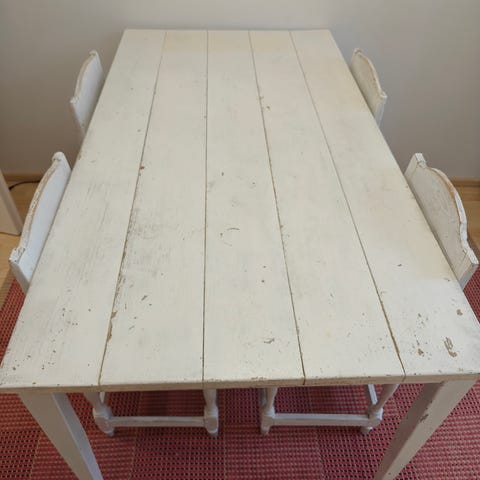 Erittäin siistissä kunnossa oleva pöytä. Pöydän mitat: pituus 140 cm, leveys 100 cm. Jatkopalaa ei ole tallella.