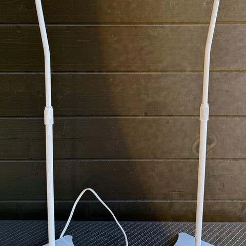 Korkeuden saa säädettyä välille 77-132cm ja johdot saa putken sisään piiloon.
