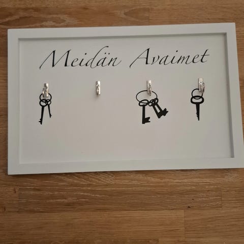 Käsintehty avainnaulakko/koriste hylly ledivaloilla. Materiaali heinäseiväs. Hyllyosa liitupintainen.