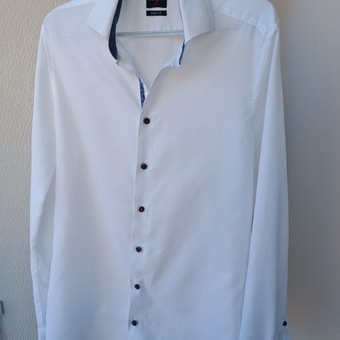 Myydään valkoinen H&M:n Premium Cotton Slim Fit kauluspaita cutaway kauluksella.