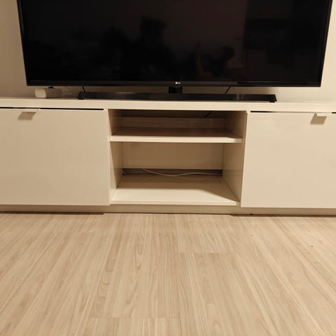 Pari vuotta vanha tv-taso. Mitat 160x42x45. Vain nouto. Nopea haku muuton alta pois.