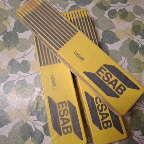 Kaksi avaamatonta tuubia (3kg / pkt) haponkestäviä hitsauspuikkoja.