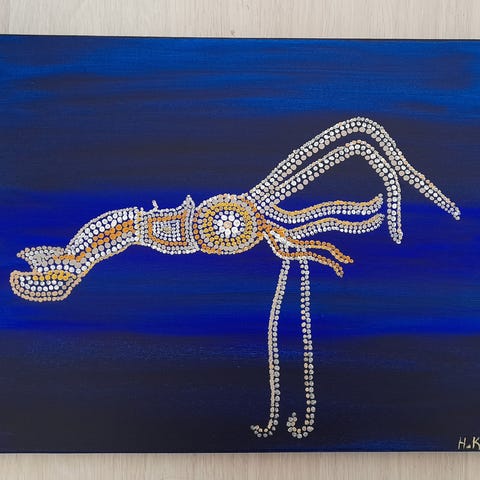 Timorinkauris, 50x40 kokoinen (cm) akryylimaalaus kangaspahvipohjalle, ei ole kehystetty. Saa laitettua seinälle sellaisenaankin ilman kehyksiä.