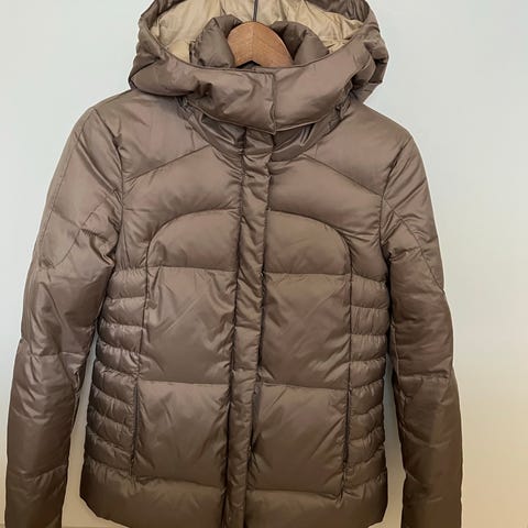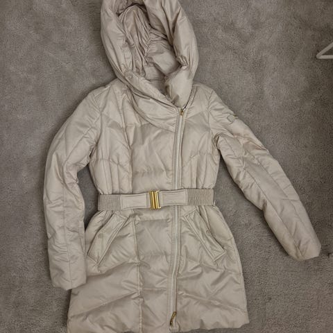 Ihana Esprit untuvatakki. Hihoissa sisällä resori, taskut fleece vuorella, kultaiset yksityiskohdat, kahdensuuntainen vetoketju, muhkea kaulus/huppu. Kuvat ei tee oikeutta. Koko 34-36.