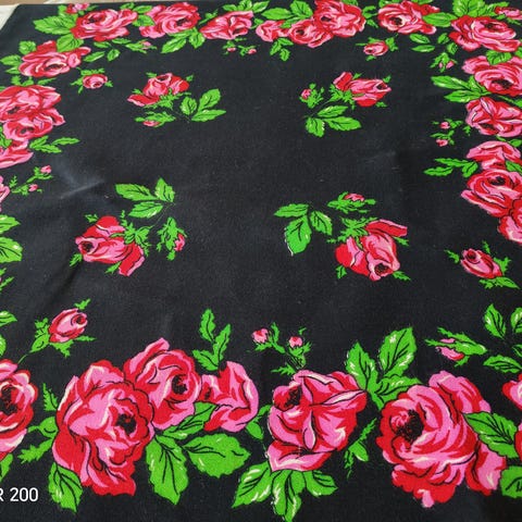 Iso punainen ruusuhuivi ilman hapsuja, koko noin 126 x137cm, tämä on villaa. Valoa vasten muutama reikä ja reunoissa muutama tumma pieni läikkä, en saanut kuvaan. HINTA 8€ + postit. mmm