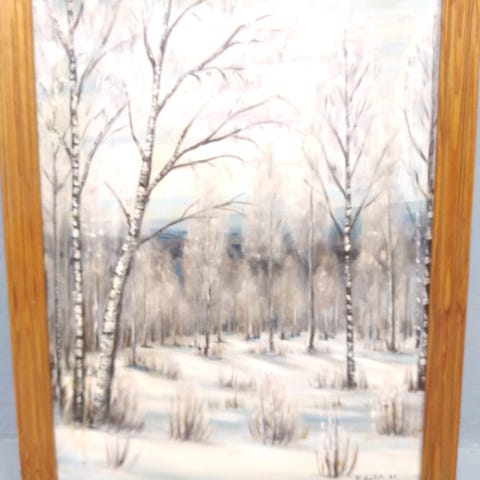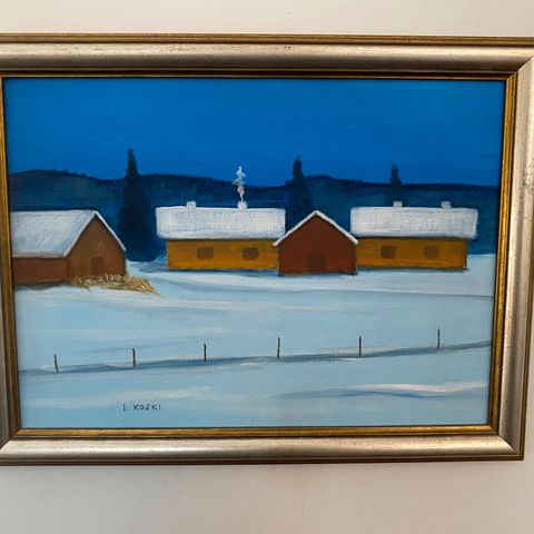 Kaunis kevättalvimaisema. Koko 30x37cm. Öljy kankaalle.