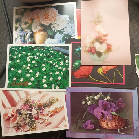 9 kpl käytettyjä kukkakortteja.