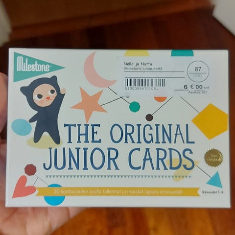 Käyttämättömät Milestone-kuvauskortit lapsen merkkipäiviin. Korteissa suomenkieliset tekstit.