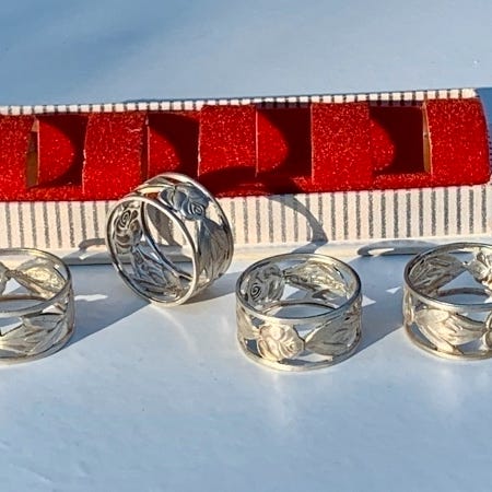 Servettirenkaat/lautasliinarenkaat, hopea, antiikki, vintage/uudet, design