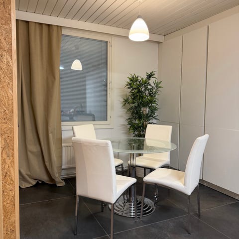 Erinomaisessa kunnossa oleva musta ruokapöytä. Karkaistua lasia 110x110 ja runko alumiinia. Vankka rakenne. Ei heilu eikä nitku. Savuton ja eläimetön koti.