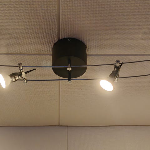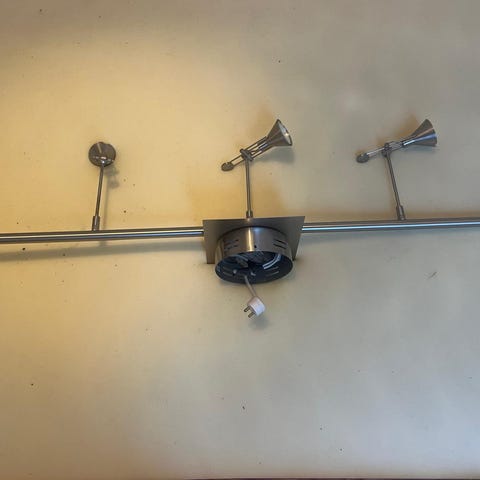 Ikean rosterinen kattovalaisin kolmella liikuteltavalla spotilla. Kätevä, erittäin siisti ja toimii loistavasti! Ruuvit ja kiinnikkeet kaikki mukana (ollut kiinni sokeripalalla). Lamput GU-10 -kantaiset. Lamput valaisimen mukana kaupan päälle. Myyn muuton alta pois. Lev. 71cm, kork. 17,5cm lampun kanssa, spotti 10cm lampun kanssa. Kulkeutuu mahdollisesti mukana Tampereen lähelle, esim. Kangasala.