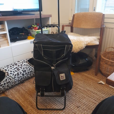 Uusi kauppa/vetolaukku, laukun saa otettua myös irti kannettavaksi.