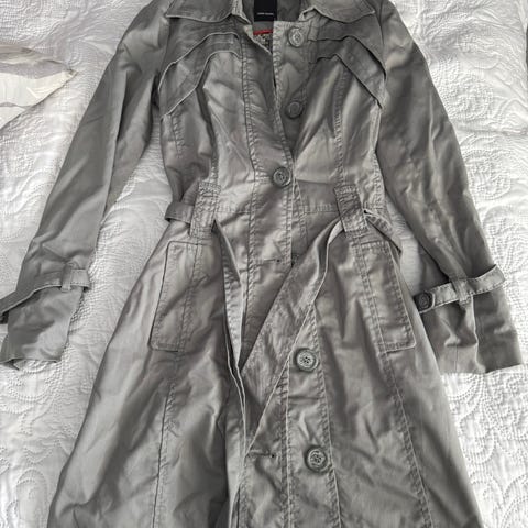 Väärän koon vuoksi kokonaan käyttämättä jäänyt Jsfn-merkkinen takki. Väljä koko 36, vastaa mielestäni enemmän kokoa 38. Pidempi, rento malli. Vetoketju- ja nappikiinnitys. Vyötäröllä, helmassa ja hihansuissa säätömahdollisuus ja hupussa irrotettava tekoturkisreunus. Ulkopuolella neljä napillista taskua ja sisäpuolella povitasku.