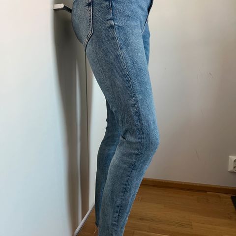 Myytävän vähän käytetty farkut. Vyötärönymp. 80 cm. Vyötärö korkea. Lahkeen pituus sisä- 70 cm.