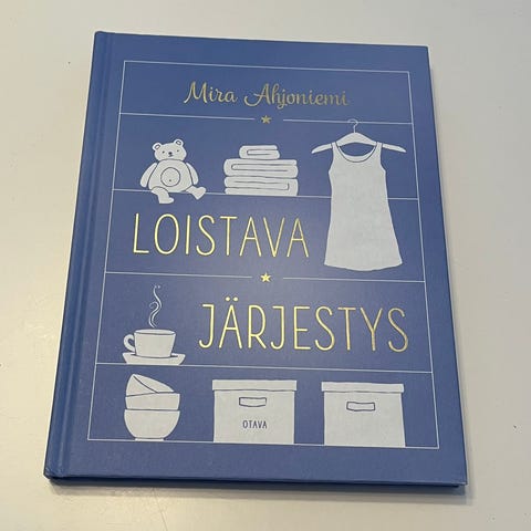 Mira Ahjoniemen kirjoittama kirja Loistava järjestys, jossa pureudutaan kodin epäjärjestykseen ja sen taltuttamiseen. Siistikuntoinen, kulmissa hieman kulumaa. Tilaa omille merkinnöille.