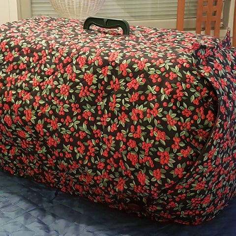Käsityönä tehty uusi kuljetusboxin suoja.
