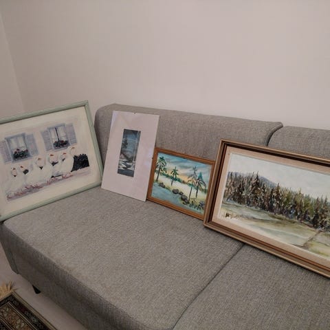 Taulu täyttä elämää .karmissa pari pientä jälkeä,