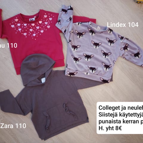 Myydään vähällä käytöllä ollut vetoketjullinen lasten college, koko 104. Yhden lapsen jälkeen. Ei hometta. Ei tupakkaa. Ei hajua. Ei eläimiä.