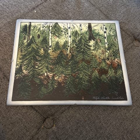 Armas Hurstin Talvimaisema. Työn korkeus 27 cm ja leveys 41 cm.