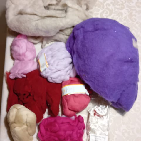 Kuvan mukainen kasa (n 70g) huovutusvillaa. Postitus onnistuu.