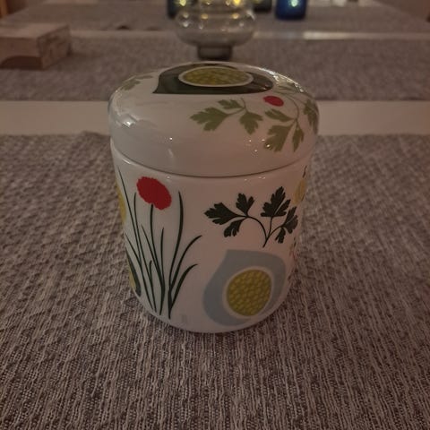 Rörstrand Kulinara purkki tiiviillä kannella. Purkin halkaisija on 9 cm ja korkeus 9,5 cm + kansi. Design Hanna Werning.