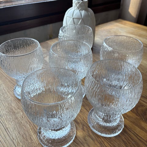 Iittala Kekkerit sarjaa design Timo Sarpaneva : 1 kpl tarjoilukulho halkaisija 20 cm h=17,5 cm HP 30 € + pk/nouto Tampereelta. 3 kpl jälkiruokamalja ( 1 puuttuu yhteiskuvasta ) halkaisija 10,5 cm h= 9 cm HP 20 € kpl + pk/nouto Tampereelta. 1 kpl Ölkky olutlasi 40 cl halkaisija 9,5 cm h= 14 cm HP 20 € + pk/nouto Tampereelta.19 kpl Moukku valkoviinilasi /juomalasi 20 cl halkaisija 7,5 cm h= 11 cm. HP 15 € kpl + pk/nouto Tampereelta , 2 kpl Paukku lasi halkaisija 6 cm h=9 cm HP 10 € kpl 1 kpl maljakko halkaisija 18,5 cm HP 25 € + pk /nouto Tampereelta tai kaikki yhteensä 400 € + pk / nouto Tampereelta, sopimuksen mukaan.