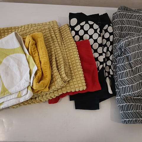 Pienet tapletit 28cm x 26,6cm. Kaitaliina 28cm x 67cm.