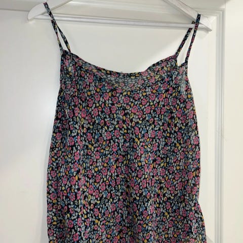 Uusi sileä joustava kukallinen toppi, lyhyt malli. Takaa vähän pidempi. Koko M