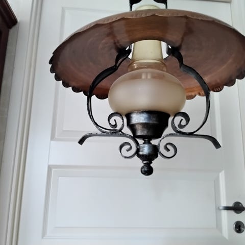 Kaksi samanlaista kattolamppua . Messinki / maitolasi