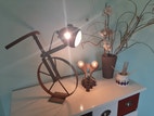 hakusanat: valaisin lamppu retro vintage antiikki metalli pöytälamppu teollisuusvalaisin teollisuuslamppu steam punk pöytävalaisin industrial industrialvalaisin pyörä satula vaihteet rustiikki patina polkupyörä fillari pyörä tehdaslamppu tehdasvalaisin rustiikki rustiikkinen polkupyöränlamppu dynamo rauta valaisin parainen