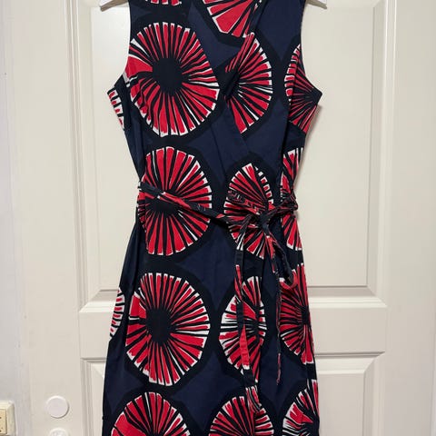 Erittäin siistikuntoinen Marimekko Appelsiini kuosinen mekko koossa M (Vastaa paremminkin S kokoa). Joustavaa materiaalia.