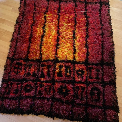 Laila Mikkosen suunnittelema hyväkuntoinen Pirkka-ryijy.