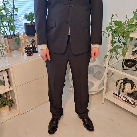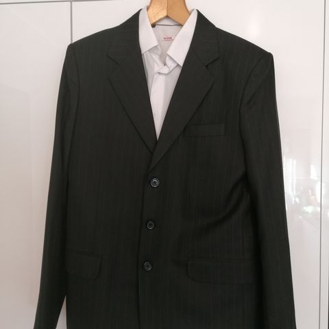 Takki koko B48 ja housut B50. Kauluspaita S B-fit.